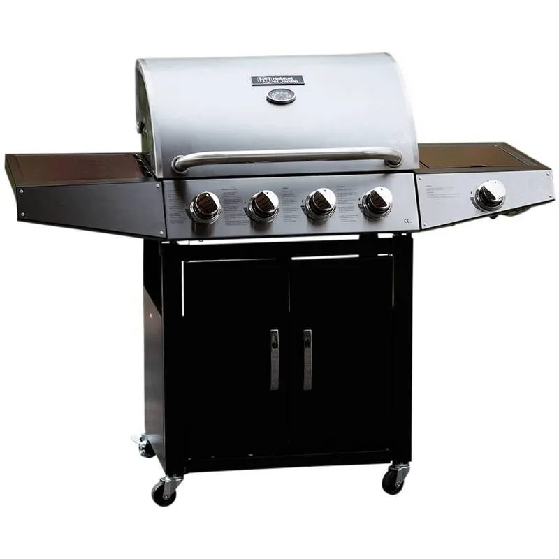 Parrilla de Gas Treville 4 Quemadores con Termómetro y Llama Lateral, Negra