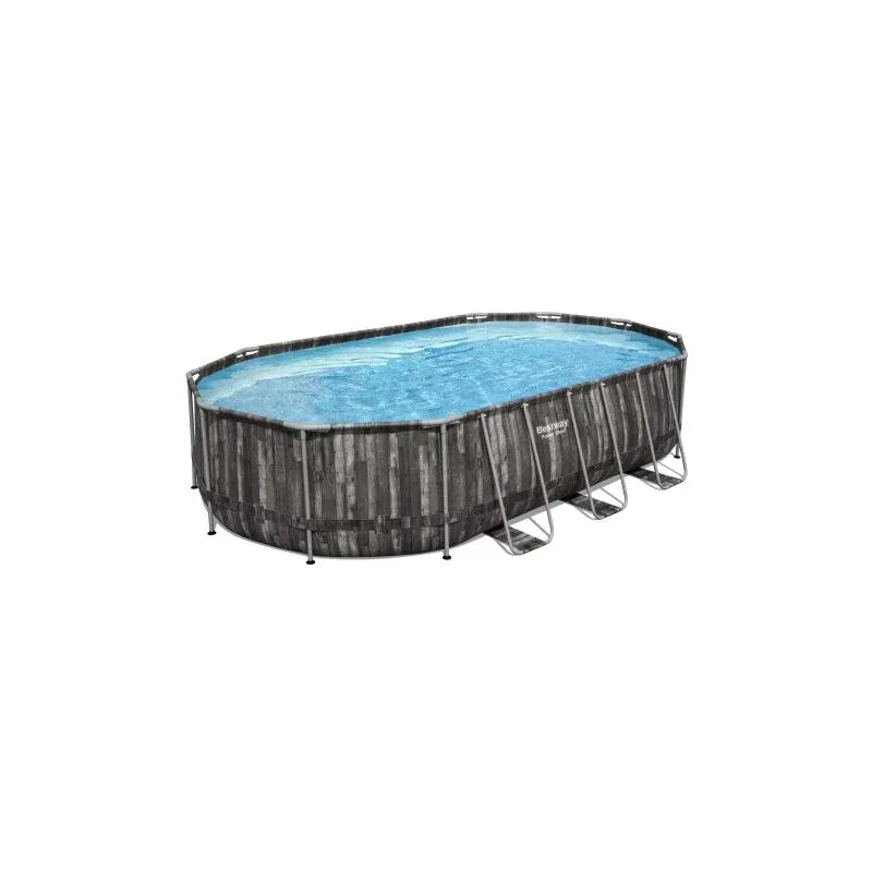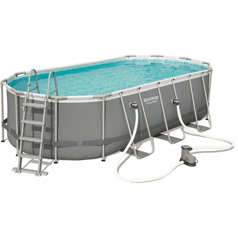 Piscina Rectangular Bestway Power Steel 412x201x122 cm con Filtro de Arena, Escalera y Dosificador Químico, Gris