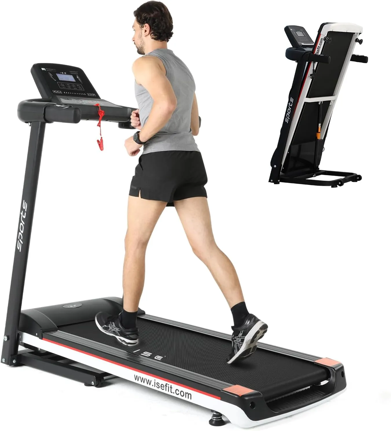 Cinta de Correr Plegable ISE con Pantalla LCD y Soporte para Móvil, 12 Programas de Ejercicio, Caminadora Eléctrica Silenciosa para Casa